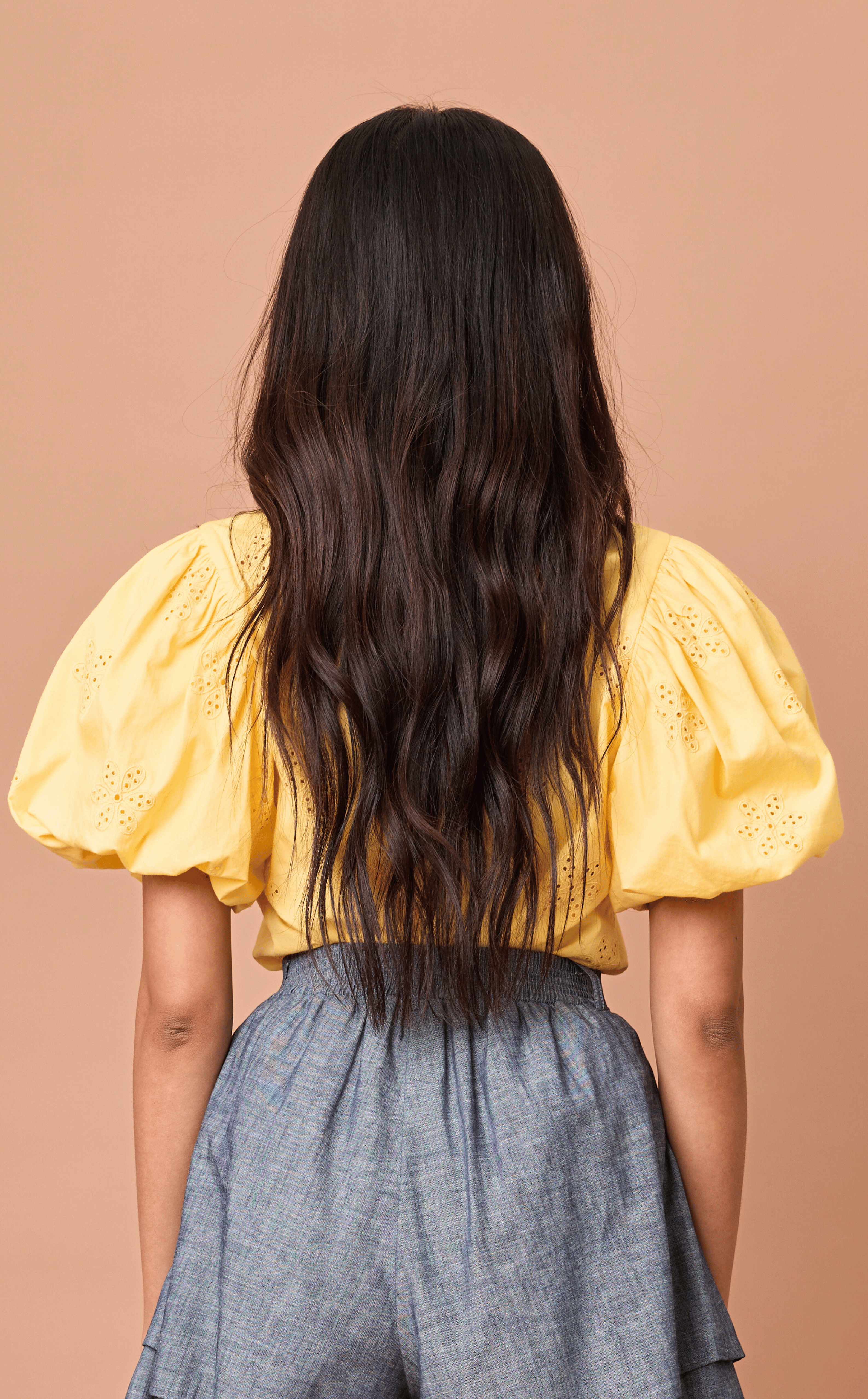 The CELIA TOP features dramatic puff sleeves and a crisp collared neckline for a bold yet refined look. Its versatile design transitions effortlessly from work to weekend, making it a stylish staple for any wardrobe.