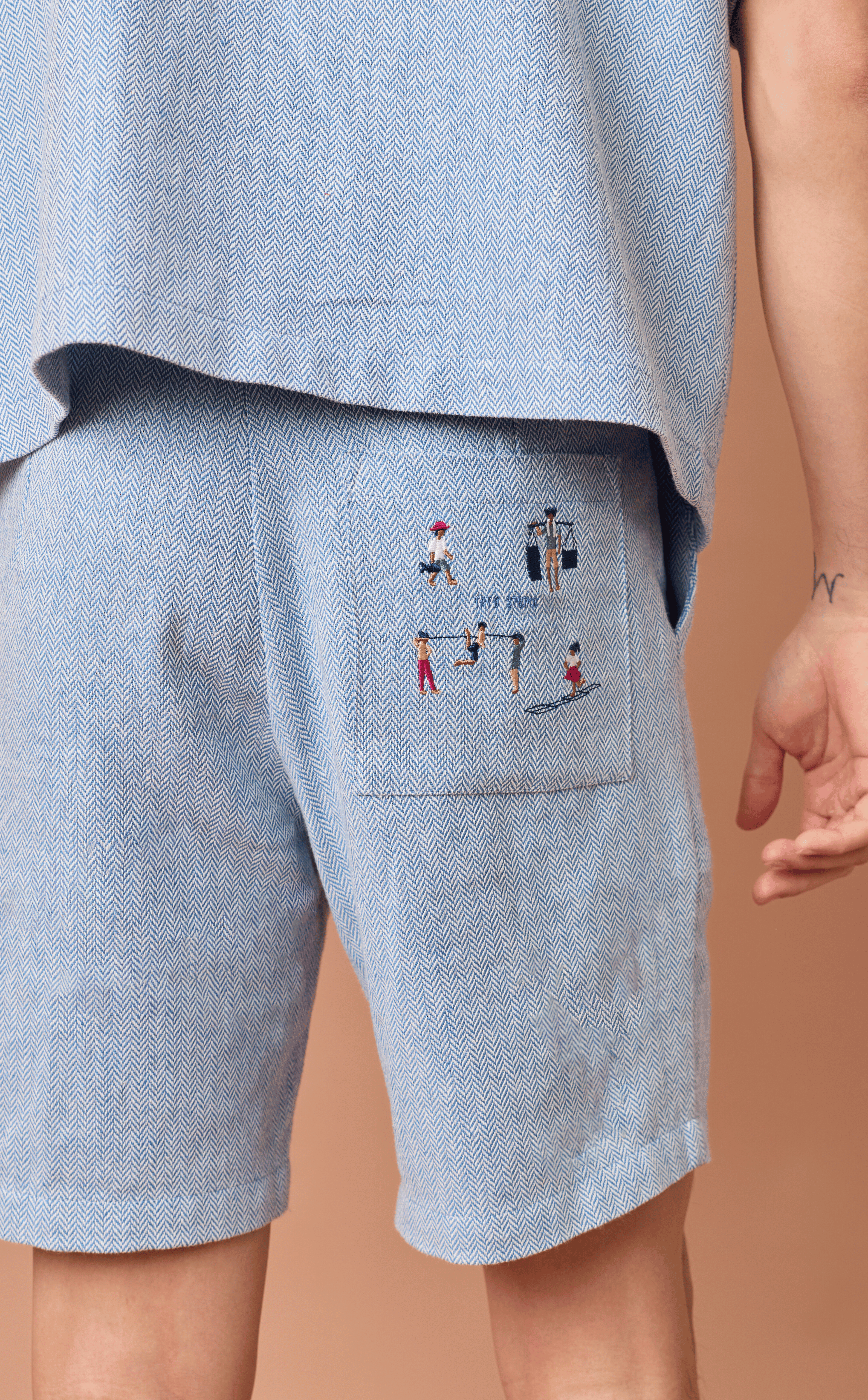 MANU SHORTS - CHEVRON TWEED w/ KALYE EMBRO