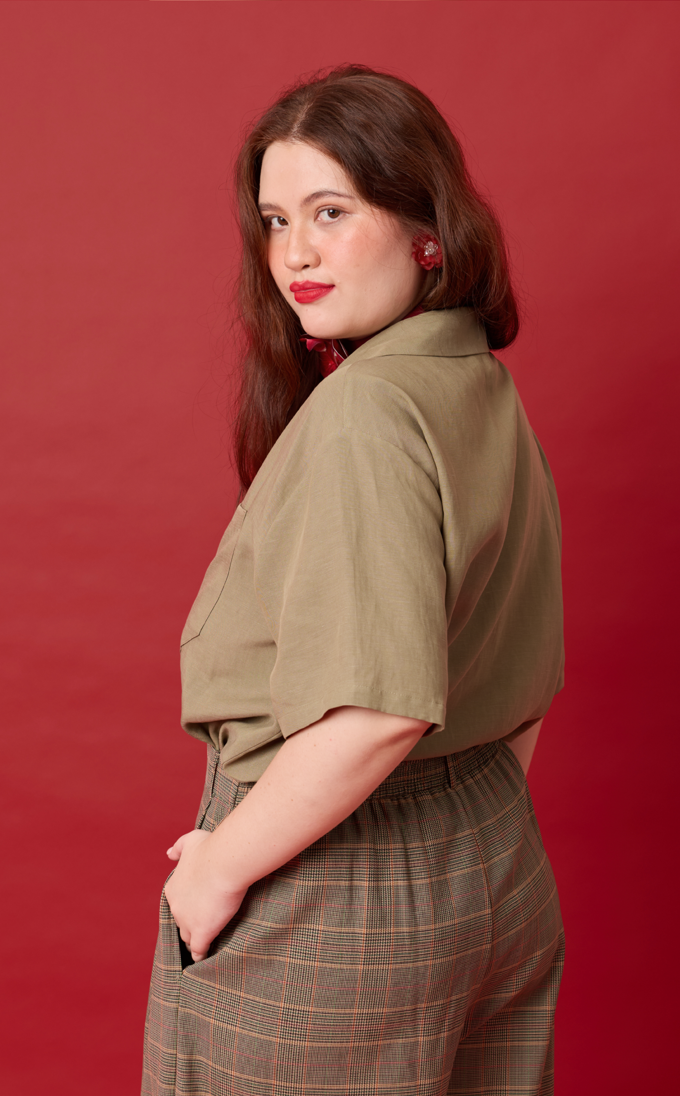 POLLY TOP - OLIVE BANANA LINEN