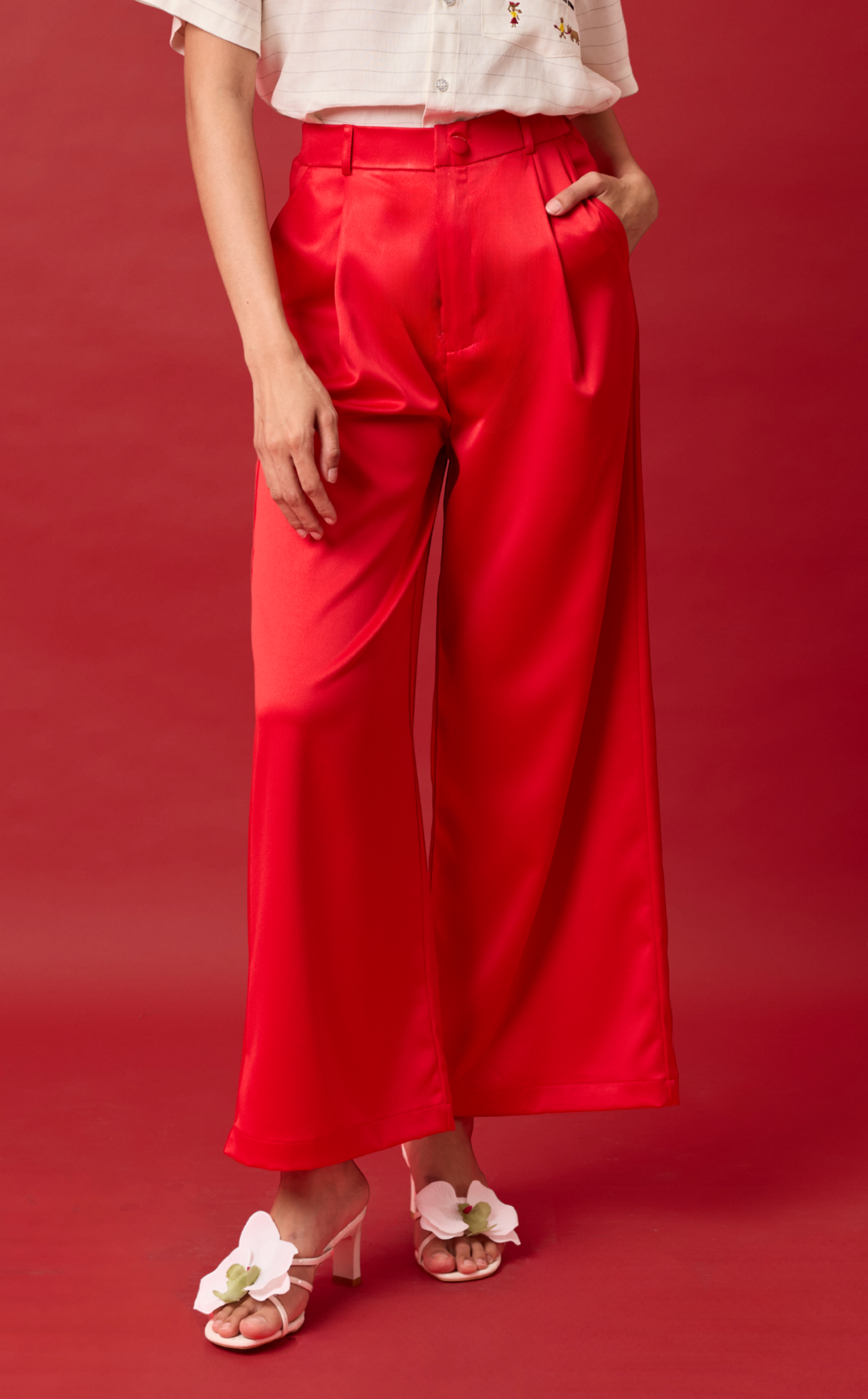 RANDY PANTS - RED SATIN